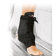 For weak ankles and minor sprains, strains and overuse injuries. Adjustable strap provides compression and support. Material: 65% neoprene, 15% nylon, 10% polyester, 10% elastic.
